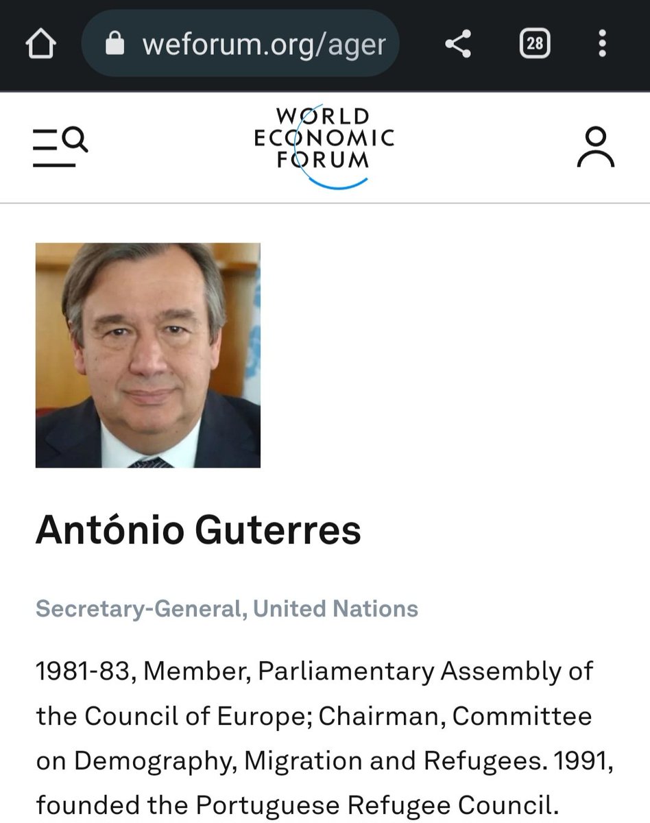3) Klaus Schwab is a panelist for the United Nations' Department of Economic and Social Affairs, and António Guterres is an agenda contributor at the World Economic Forum.
