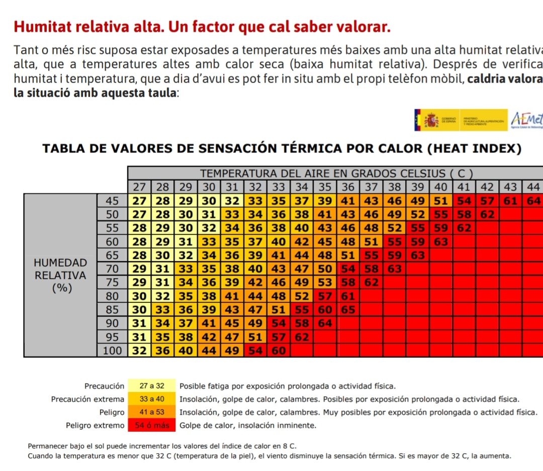 💧No es contempla la humitat relativa, un factor que augmenta la sensació tèrmica! 👎🏼