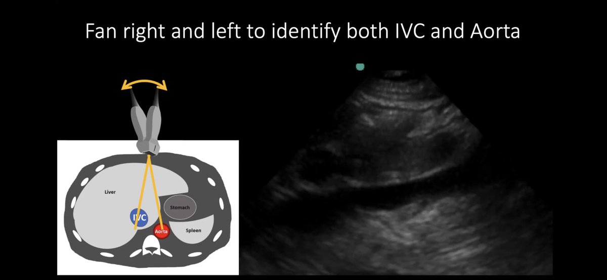 ⚠️For IVC US you will need to know how to rock and do fanning. Rock to find RA! Fan the probe more laterally so you can identify IVC! After that sweep the probe so you can be perpendicular to the UVC.