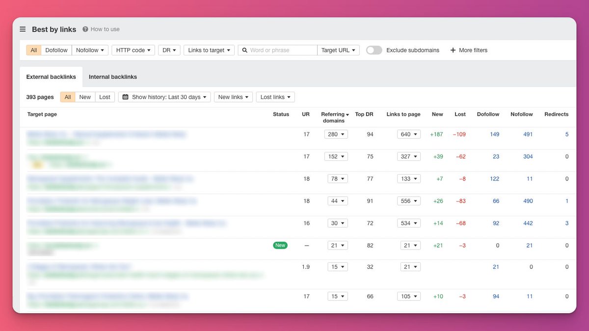 Then, underneath the "Pages" menu on the left sidebar, we click "Best by links."