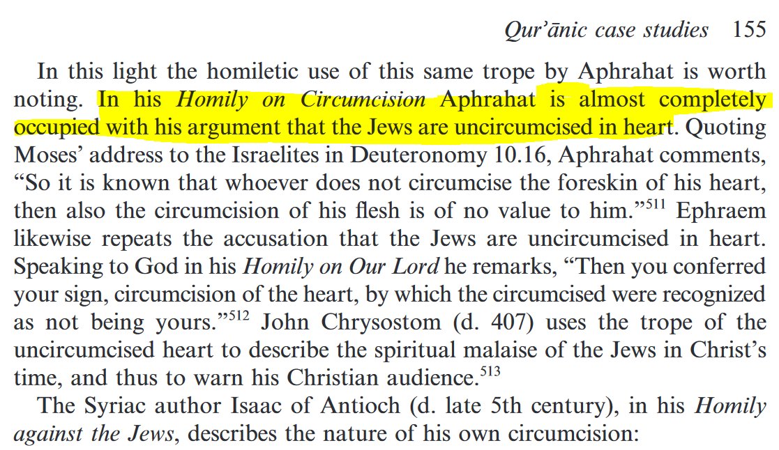 Comme l'explique Reynolds, l'idée que les juifs sont incirconcis de cœur est un reproche polémique qu'on retrouve énormément chez les auteurs chrétiens, et en particulier chez les syriaques.