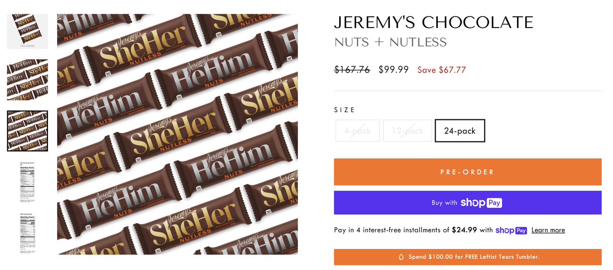 For example, the Daily Wire sells a chocolate bar that’s a direct backlash to the inclusion of a trans woman in a Hershey’s campaign.
