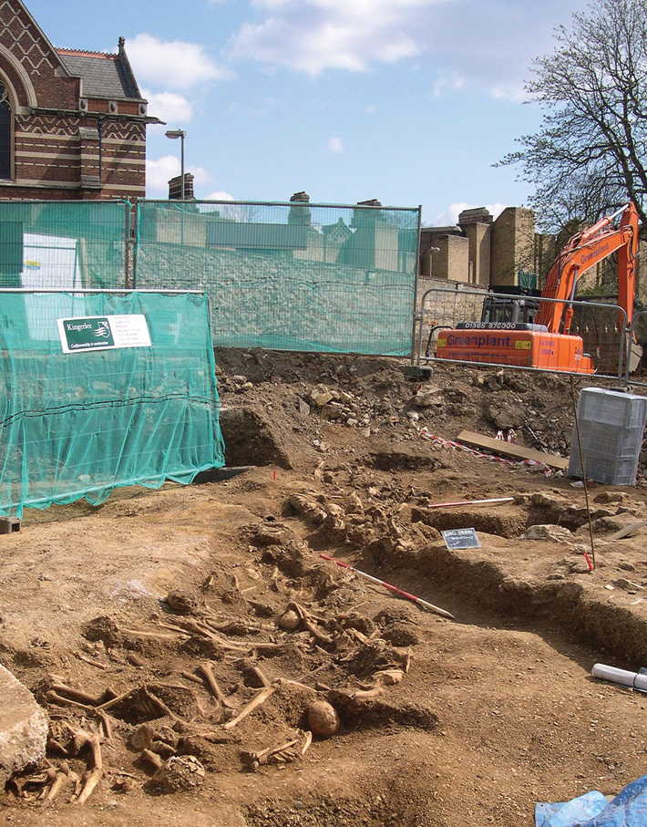 2) Later, during construction of Oxford University's Kendrew Quadrangle in 2008, a mass grave of 35 male skeletons was unearthed. Forensic analysis showed they were men aged between 16-25 who died extremely violently, many stabbed several times before being decapitated...