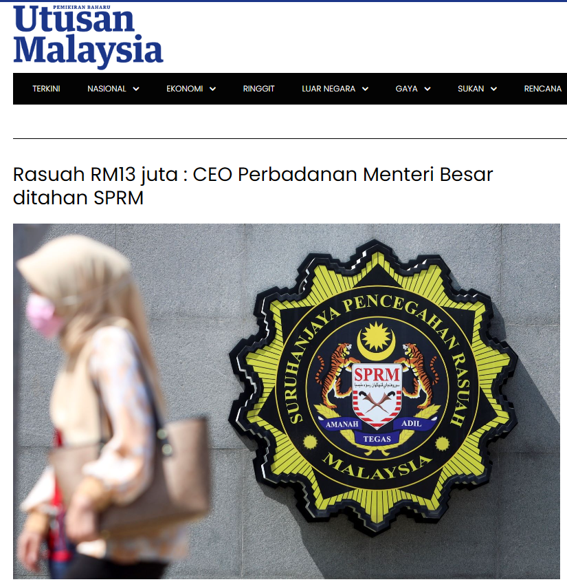 CEO MBI sebuah negeri di utara semenanjung ditahan, kes rasuah RM13 juta. Kes berkaitan REE.