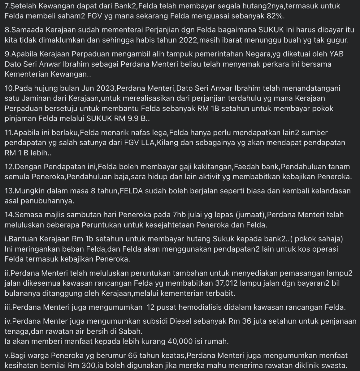FELDA pulak dalam proses pemulihan. Hutang peneroka dah dihapuskan. Sumber kewangan tahunan depa tak cukup pun.