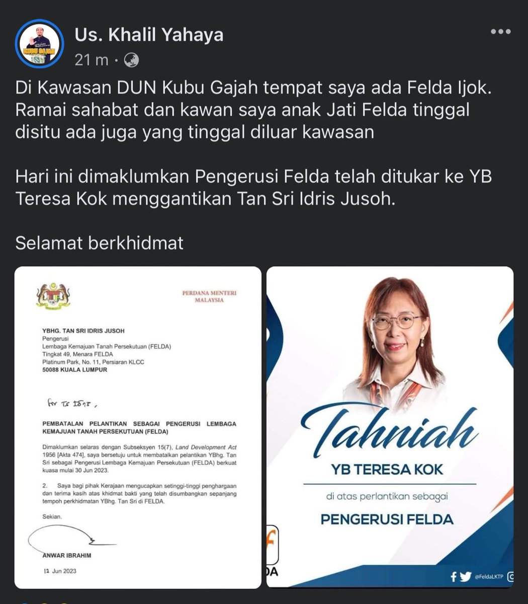 Tulisan ni aku kreditkan kepada sdr Ashraf di Twitter @aashrafz_ dan sdr Sulong Jamil, Ketua Peneroka Kebangsaan FELDA.