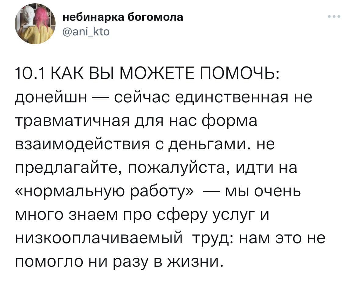 This thread is inspired by this post "don't offer me a normal job" good russian, who was asking for donations only.