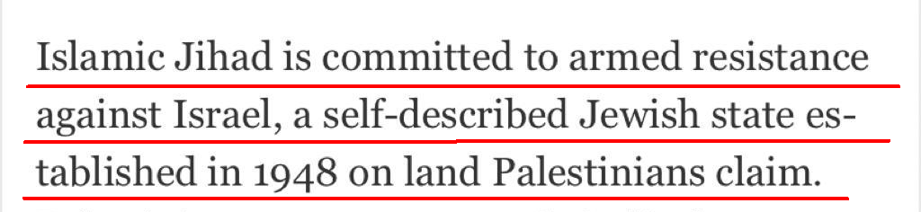 ➡Islamic Jihad's commitment to Israel's destruction is omitted while this description of Israel leaves much to be desired. 🧵 washingtonpost.com/world/2023/05/…
