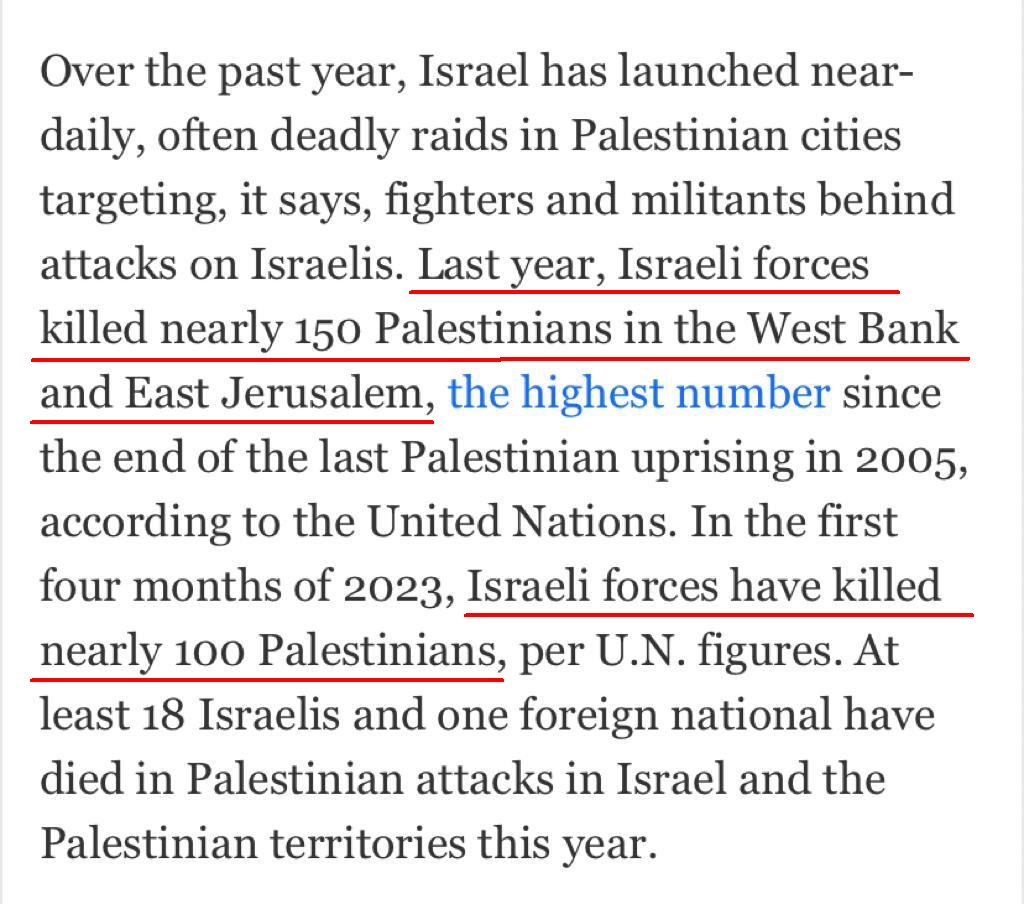 ➡Most Palestinians who died in 2022 were killed while attacking Israelis while nearly all of the Israelis killed were civilians.