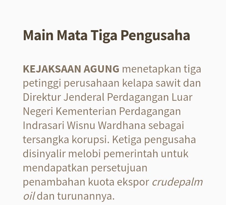 Belakangan, Kejagung menetapkan 3 perusahaan bersalah, sbb mendapat keuntungan ilegal dari terbitnya aturan ekspor yg janggal.