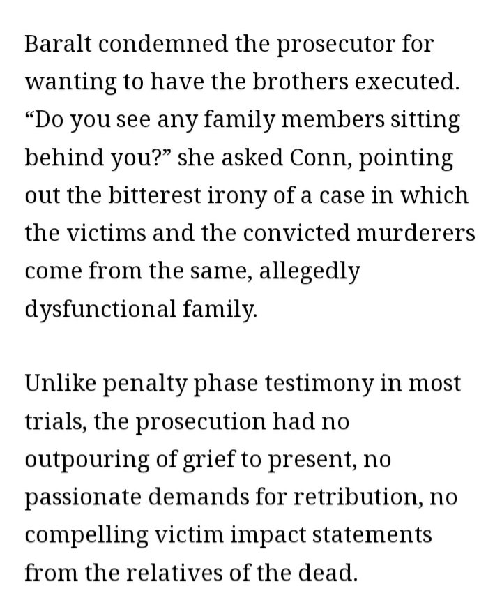 Jose's sister, Teresita Baralt, testified that her brother was "ruthless" with his boys. She said that the family was devastated when Jose and Kitty were killed in 1989, but "it was worse" after the verdicts when jurors convicted Erik and Lyle of first-degree murder. https://t.co/r37fROKWt2twitter.com/i/web/status/1…