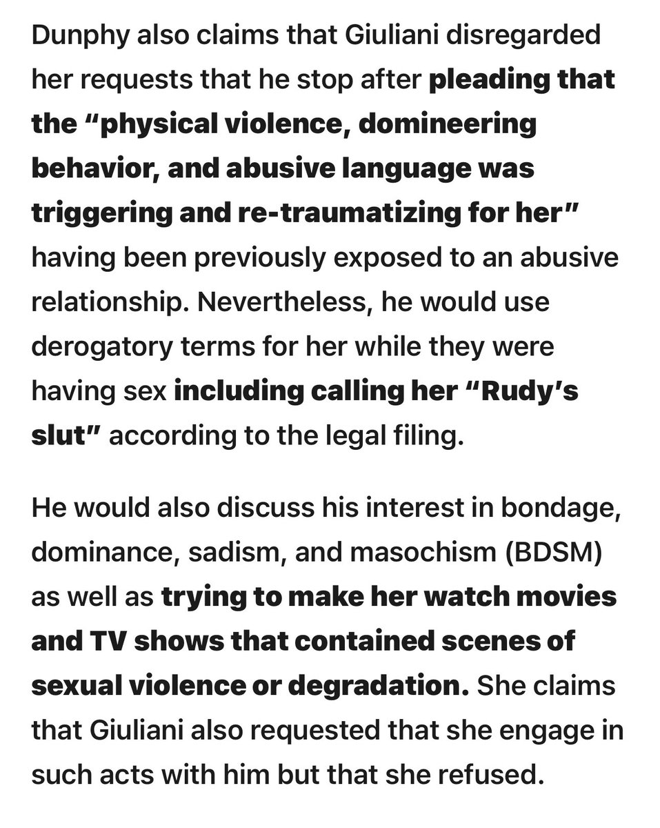 @Trump 🔥Don’t forget that Giuliani’s assistant Noelle Dunphy accused him of sexual assault! Rudy discussed bondage, sadism and masochism and made her watch movies w him w scenes of sexual violence and degradation‼️Same behaviors as serial killer Heurmann‼️👇