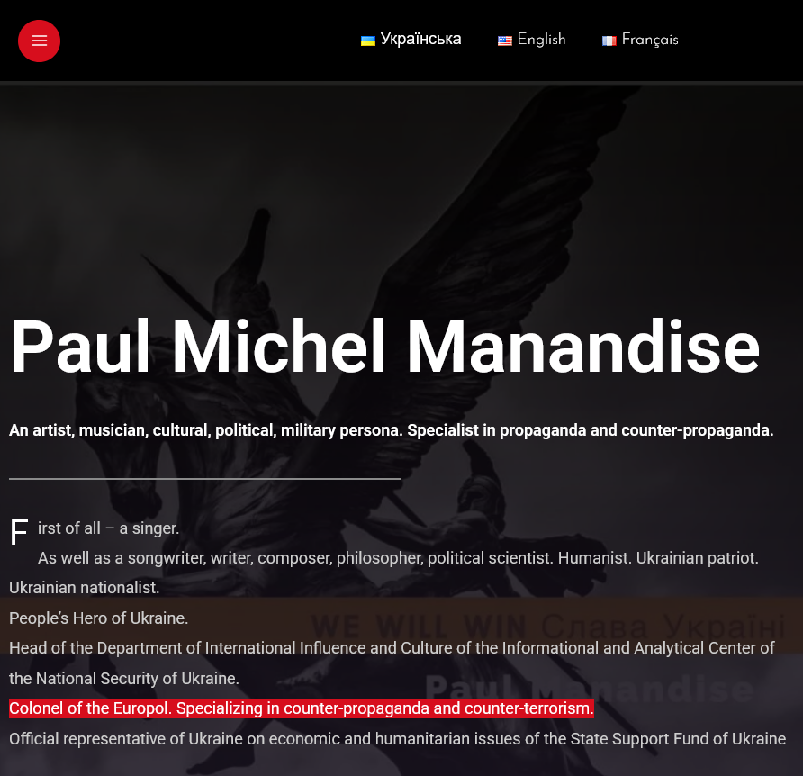 As you might have guessed, no. On his personal website, he names himself "Colonel of the Europol. Specializing in counter-propaganda and counter-terrorism". Quite a title, right? Let's take a closer look. 👇
