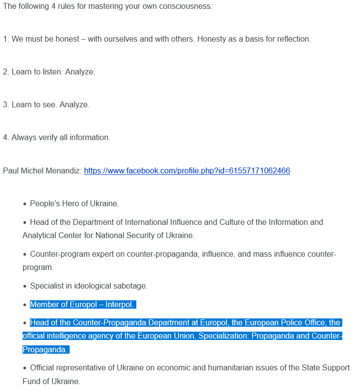 Let's work from the example provided by Ania herself, a certain Paul-Michel Manandiz, introducing himself in this article as a "Member of Europol – Interpol" among other interesting titles. Could it be a fluke? 👇