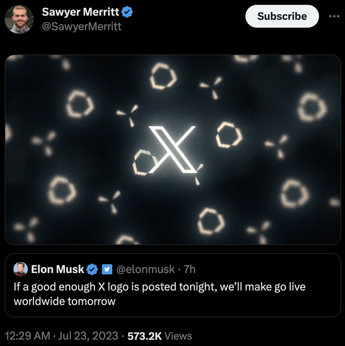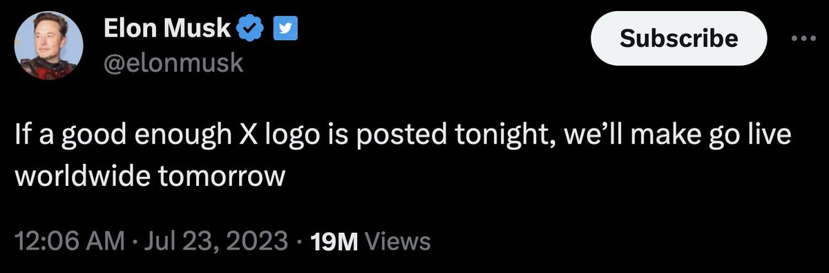 "If a good enough X logo is posted tonight, we’ll make go live worldwide tomorrow"