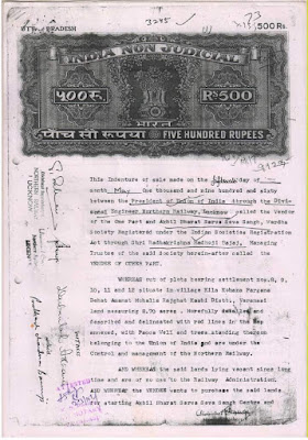 The doc mentioned that the plot no. 8/9/10/11/12 of the railways was sold at Rs 23490 that is @ 2700/acre to the Sangh.