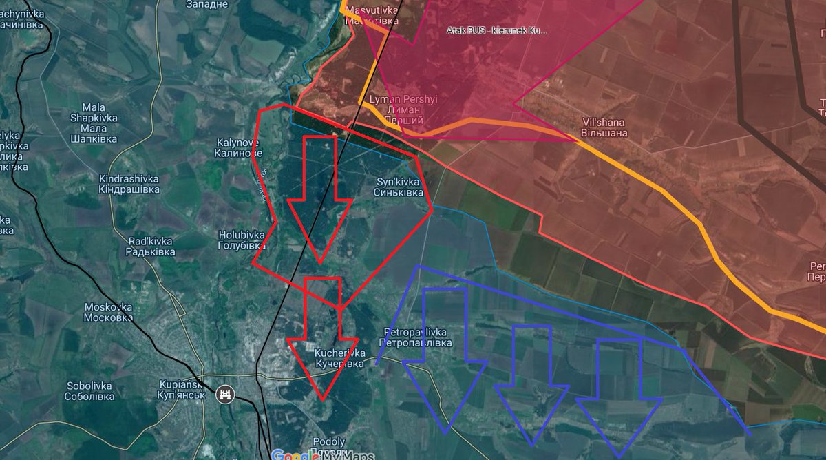 Kupiańsk. W lasach położonych na północ od miasta po wschodniej stronie rzeki Oskoł trwają bardzo ciężki walki. RUS prawdopodobnie z obawy przez silną obroną przeciwpancerną UA próbują atakować lasami z wykorzystaniem dużej liczby piechoty i SOF-u. Sytuacja jest ciężka. 2/
