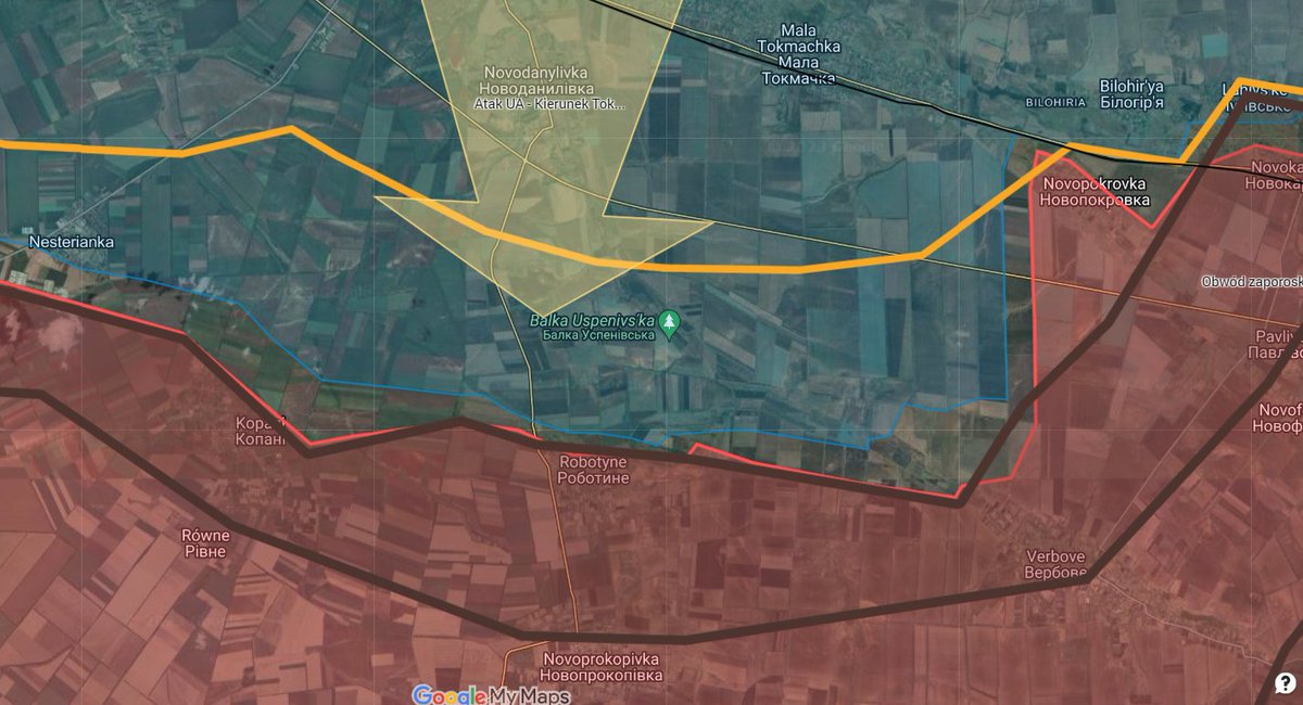 Wasyliwka-postępy sił UA są tutaj liczone chyba w 1, maksymalnie 2 kilometry kwadratowe na tydzień. Ukraińcy całkowicie stracili tutaj impet uderzenia. Obecnie prowadzą działania ofensywne pojedynczymi kompaniami lub nawet plutonami. Wygląda to na zwykłą wojnę na wyczerpanie. 30/