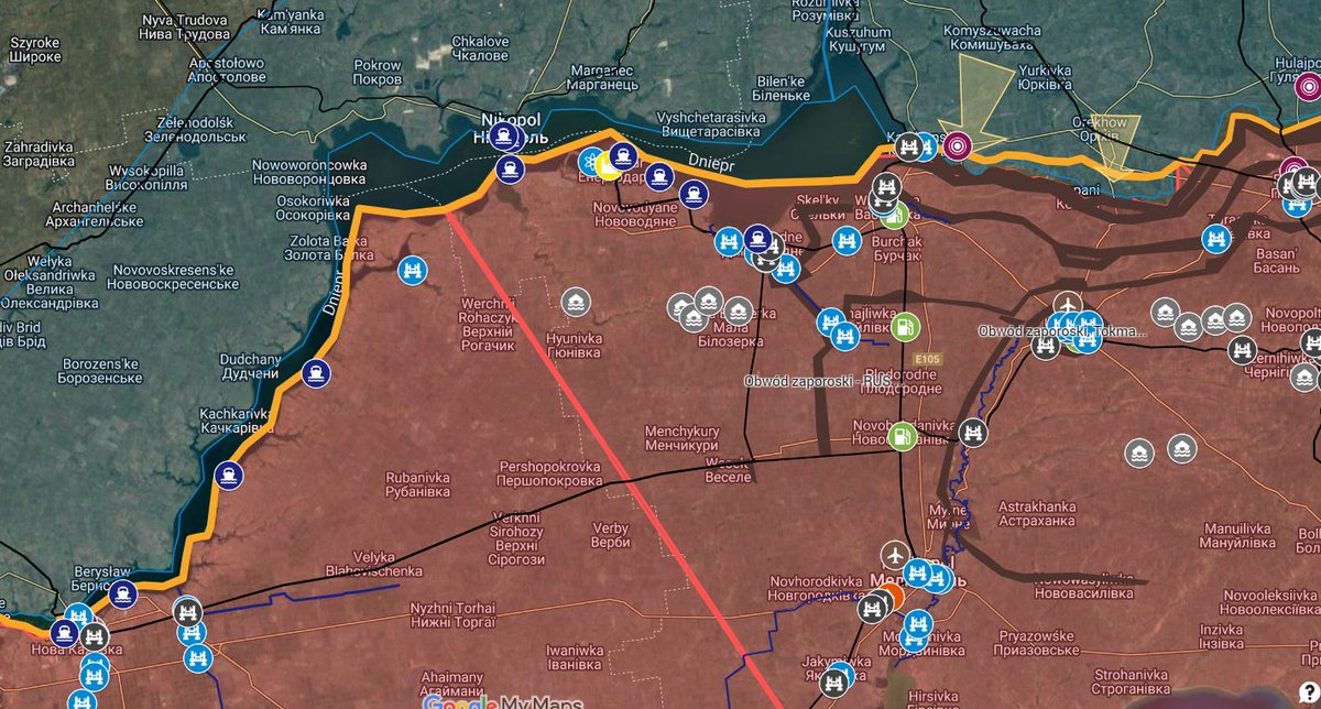 Otwiera się tutaj nowy, potencjalny kierunek działań. Obecnie RUS zaczęli rozbudowywać umocnienia polowe wzdłuż dawnego brzegu. Próbują też obsadzać linie brzegową siłami "z łapanki". Z drugiej strony, Ukraińcy w ten region przerzucili, co najmniej 3 brygady w tym jedną WOT-u.32/