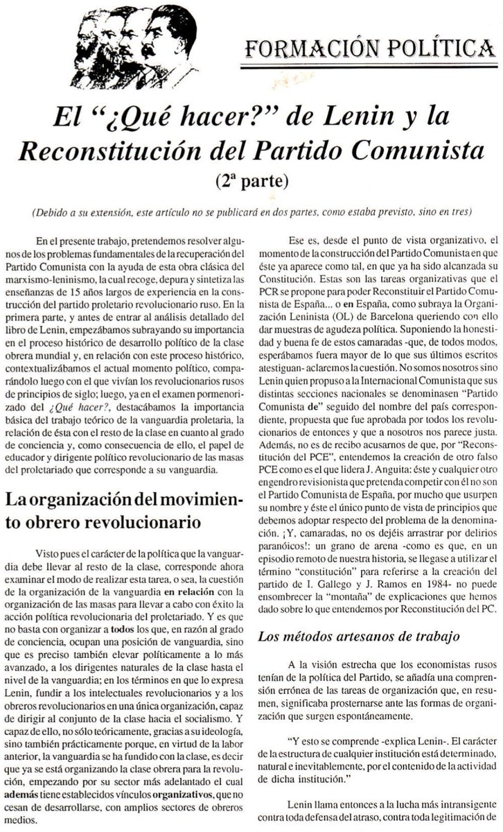 1. Recomendación: en 1996, el PCR publicó, de manera consecutiva (La Forja n°10, 11 y 12), el cuadernillo de formación política para ahondar específicamente en "El '¿Qué hacer?' de Lenin y la Reconstitución del Partido Comunista":