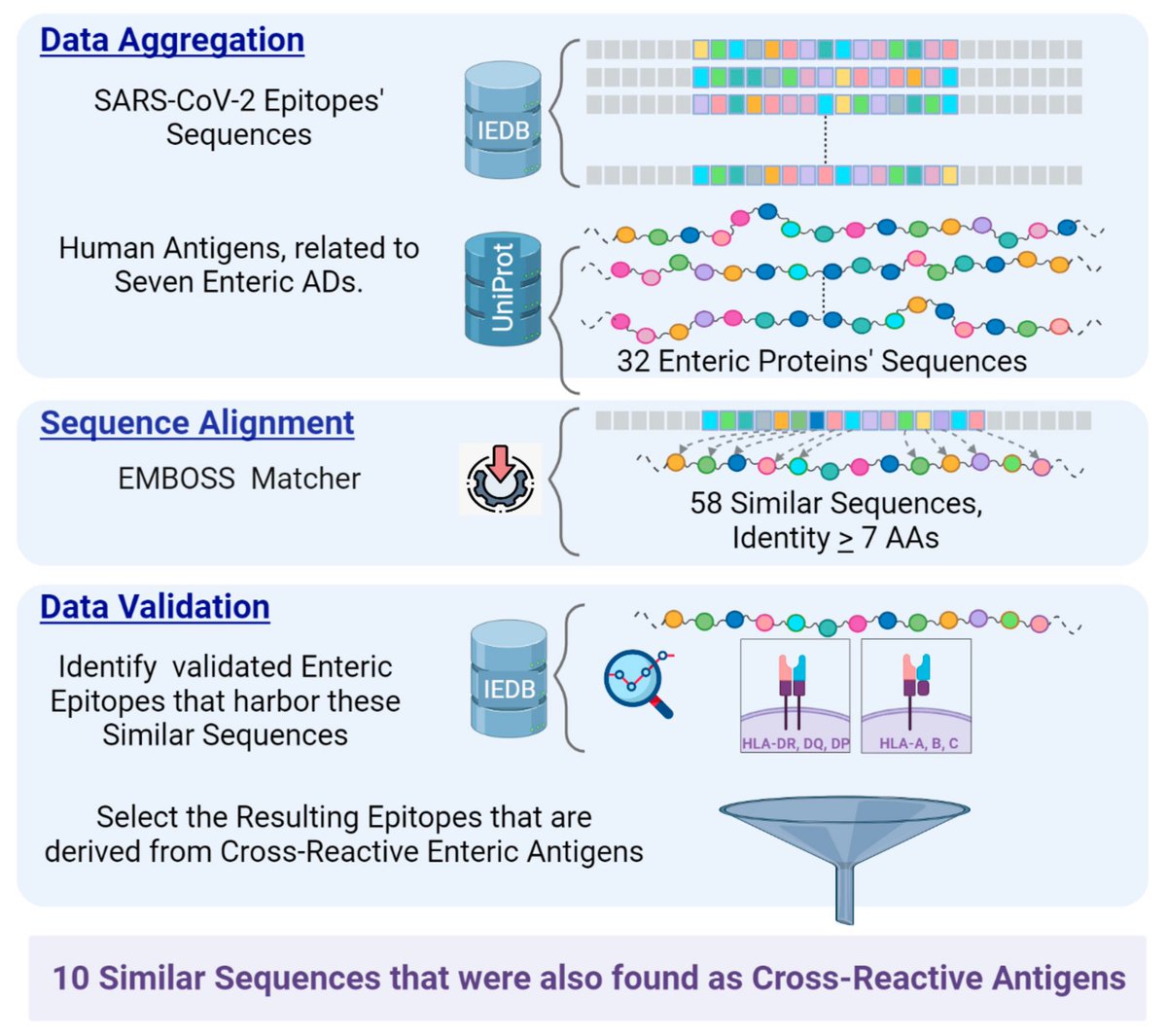 A new study elucidated sequence similarity between viral antigens & human enteric sequences, based on known cross-reactivity. SARS2 epitopes that cross-react w/ human gut antigens were explored & sequence alignment was performed against self-antigens implicated in enteric ADs 3/