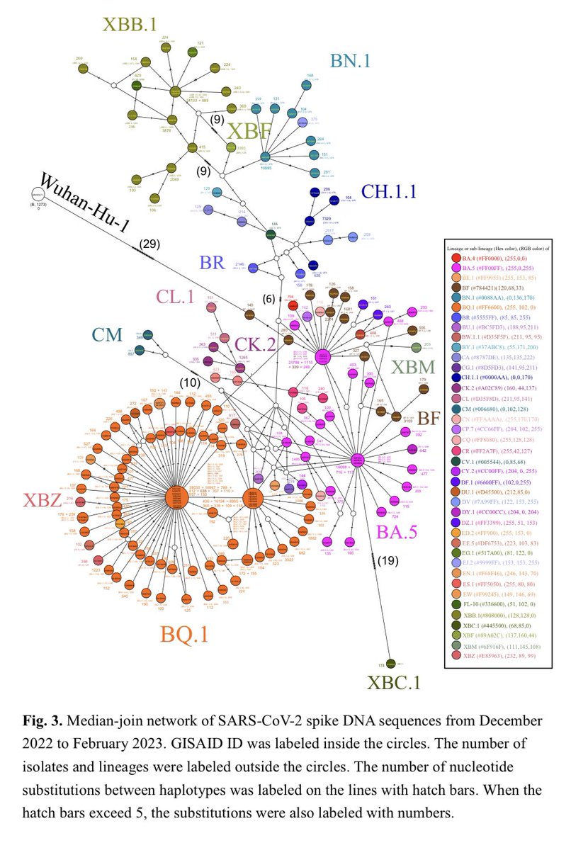 The spike DNA sequences of these diversifying centers had the representative accession IDs (EPI_ISL_) of 16040256 (BN.1.2), 15970311 (BA.5), 16028739 (BA.5.11), 16028774 (BQ.1), 16027638 (BQ.1.1.23), and 16044705 (XBB.1.5). 4/