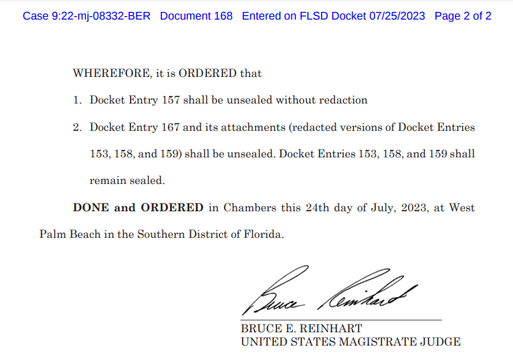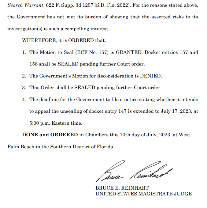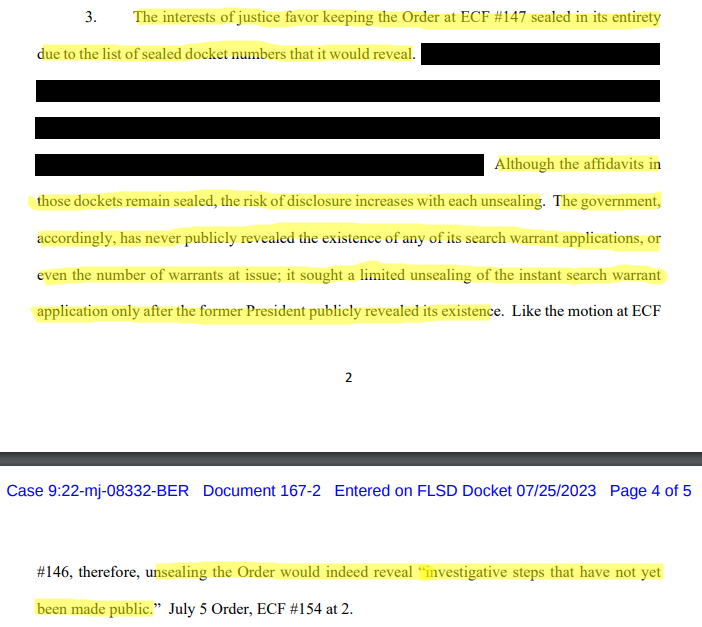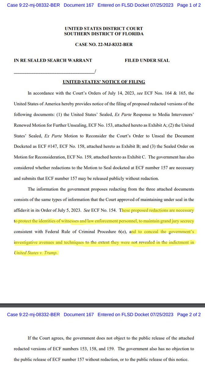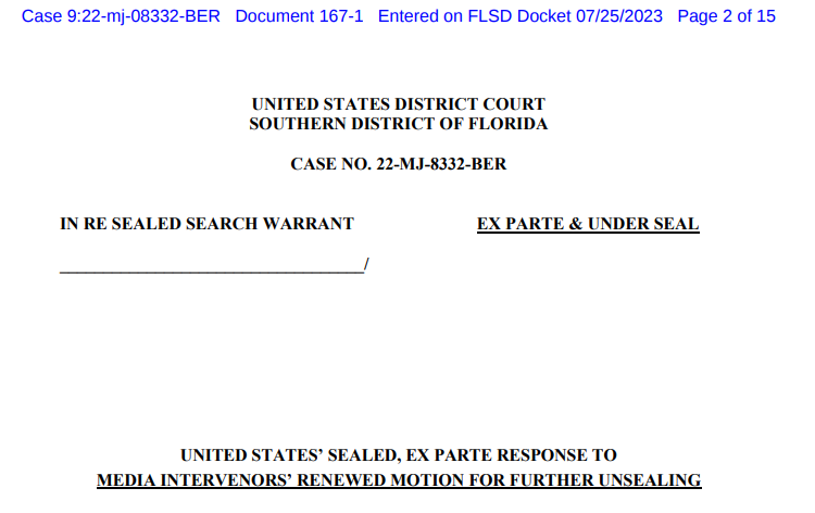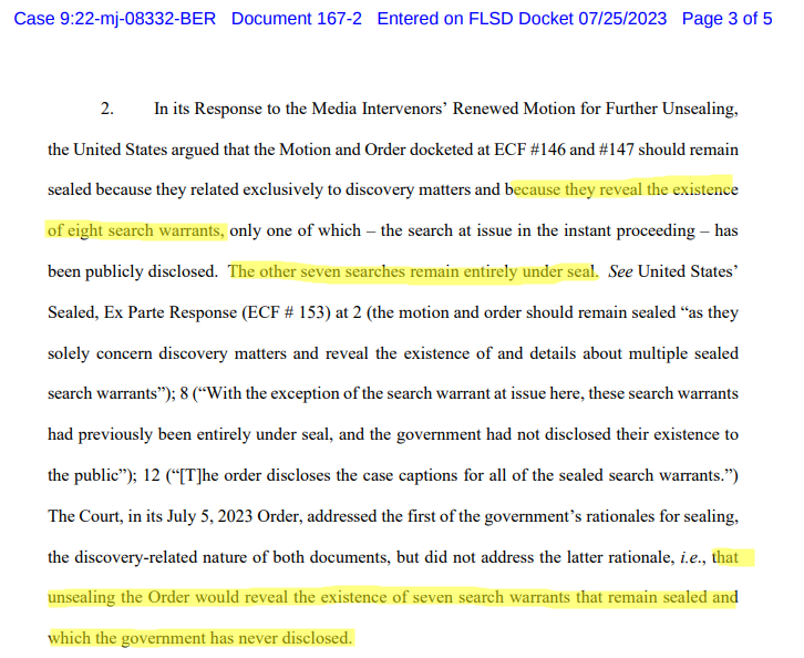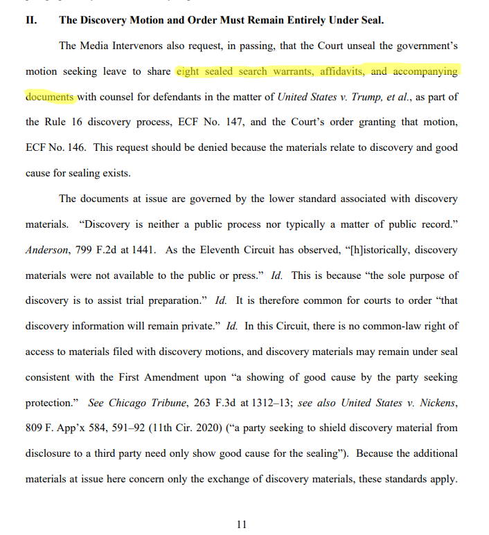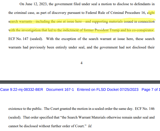 "On June 12, 2023, the government filed under seal a motion to disclose to defendants in the criminal case... eight search warrants—including the one at issue here—and supporting materials issued in connection with the investigation that led to the indictment of former President… https://t.co/NOlvxZ46yOtwitter.com/i/web/status/1…