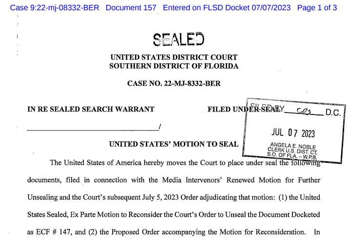 Trump was indicted by Smith on June 8th. Media are trying to get the MAL affidavit unsealed as well as other filings on this docket unsealed.