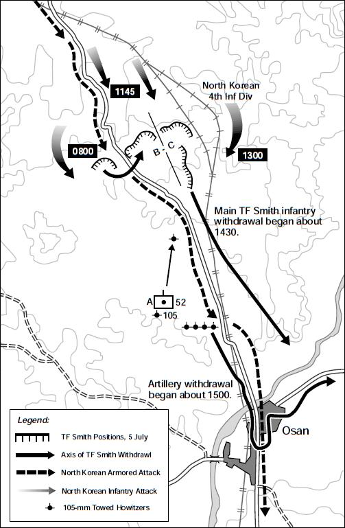 18/ But the battle was lost. Following the tanks came and entire division of North Korean infantry. At first the 500 Americans held against the 5,000 men of the 4th North Korean Infantry Division.