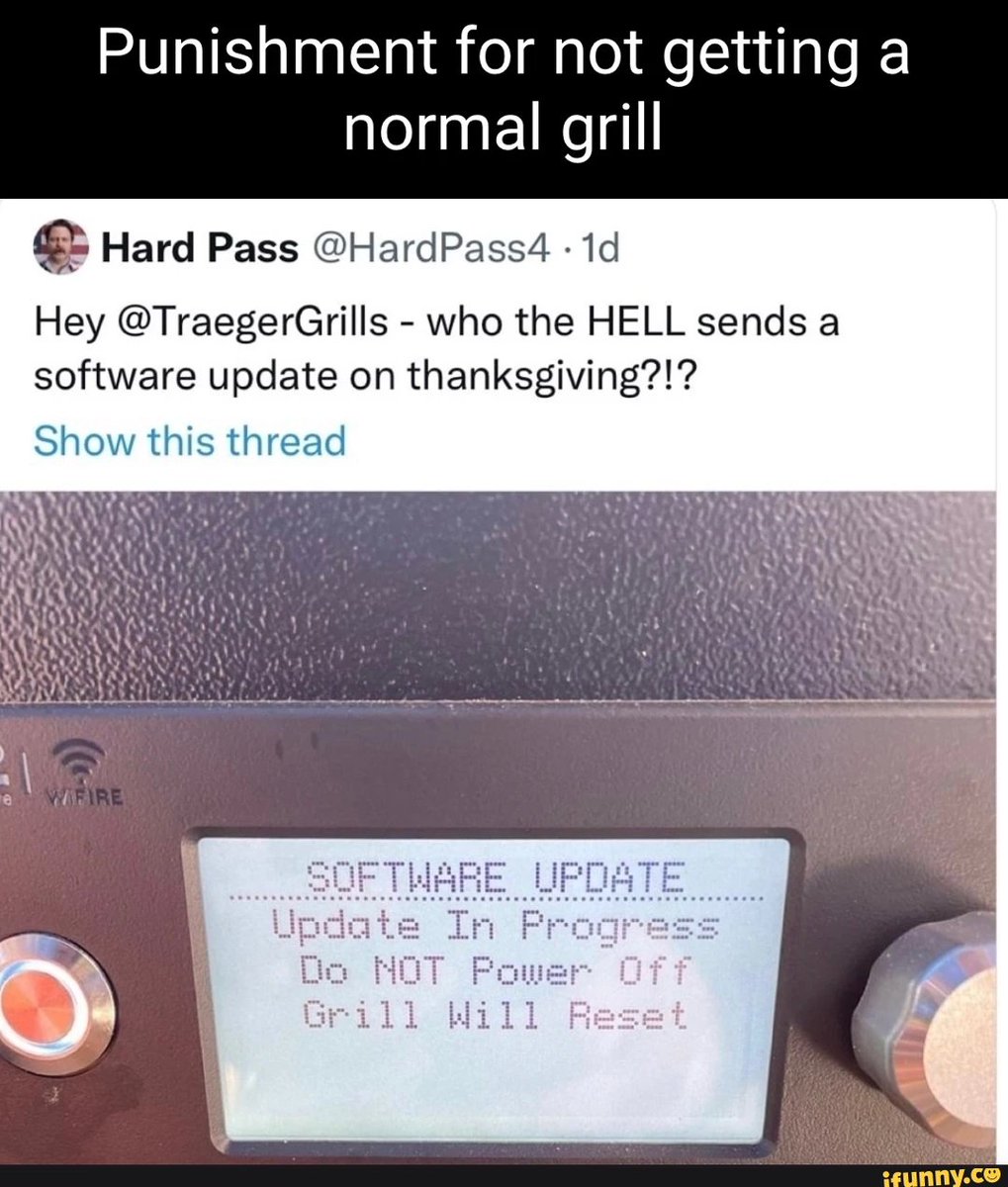 26/ And this ladies and gentlemen, is why you don't wait until Thanksgiving morning to turn on your WiFi grill like @HardPass4 . You do rehearsals, you plan and prepare, and you do better.