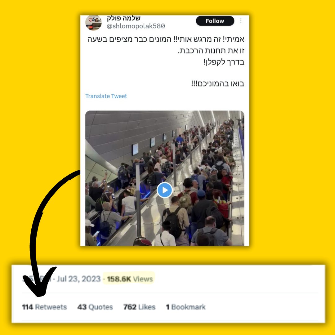 3) ביום ראשון נערכה הפגנה של תומכי המהפכה המשפטית בת״א. איש התקשורת שלמה פולק העלה סרטון בו נראים המונים ש״כבר מציפים בשעה זו את תחנות הרכבת בדרך לקפלן". הסרטון זכה לתפוצה גדולה במיוחד גם בקרב משפיענים. הבעיה? הוא מהפגנה בירושלים, באפריל. הציוץ אם תהיתם עדיין באוויר.