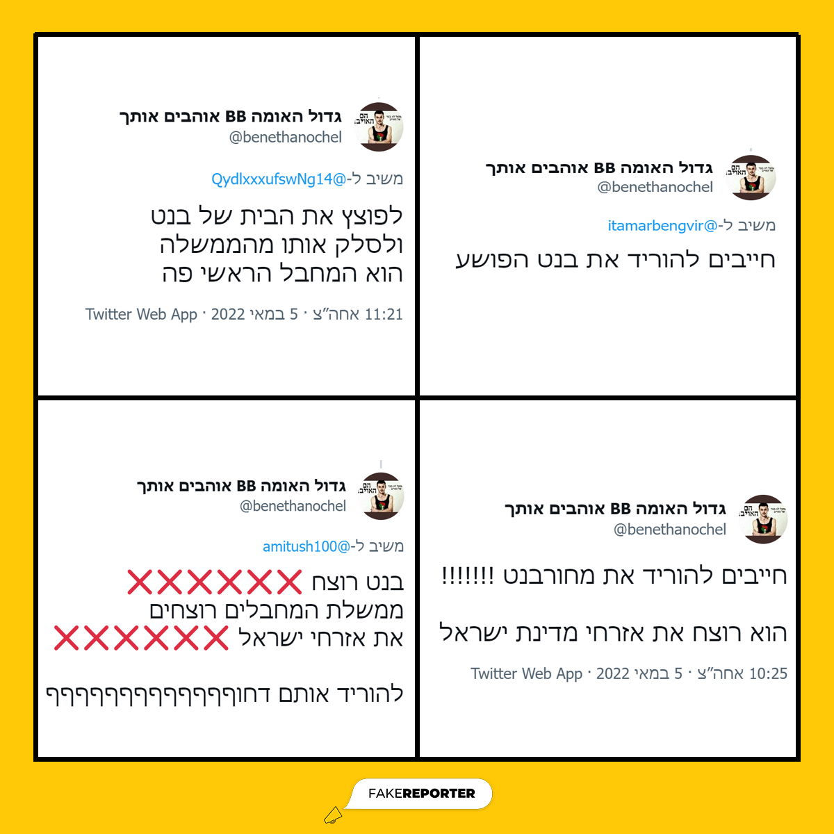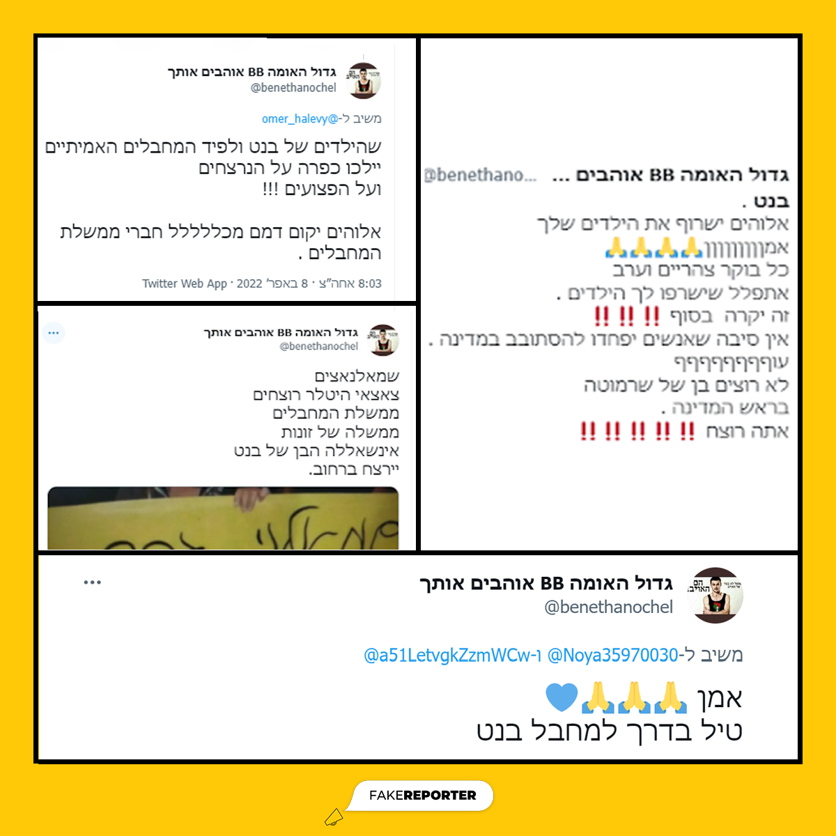 בחודשים האחרונים, הטוויטר התמלא בבנות שהעלו תמונות פנים במטרה להשיג עוקבים. טרנד ה"בת עם פנים" לא נשאר בפיד זיליניאלס, אלא גלש לפיד הפוליטי. במהלך אוגוסט, נפתחו חשבונות רבים של צעירות המקדמות את איתמר בן גביר. "בנות גביר" היא רשת פייקים לא מתוחכמת, המוקדשת להדהוד מסריו של הח"כ.
