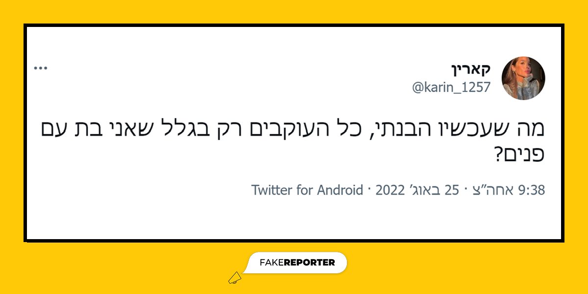 ראיתם פייק? דווחו לנו. ביחד נלחם בשקרים והשקרנים: fakereporter.net