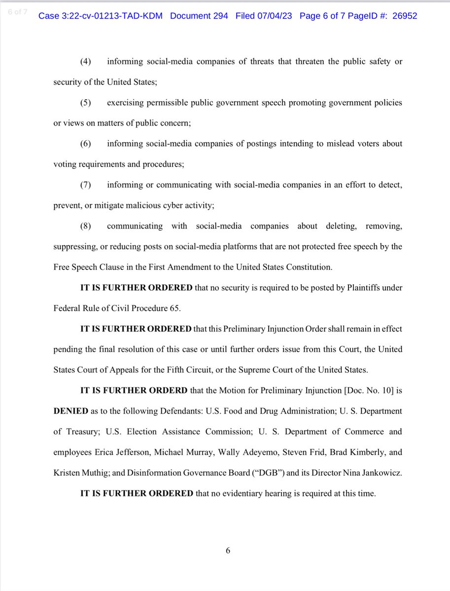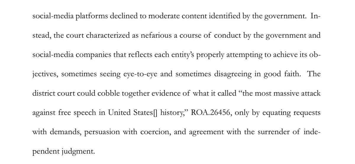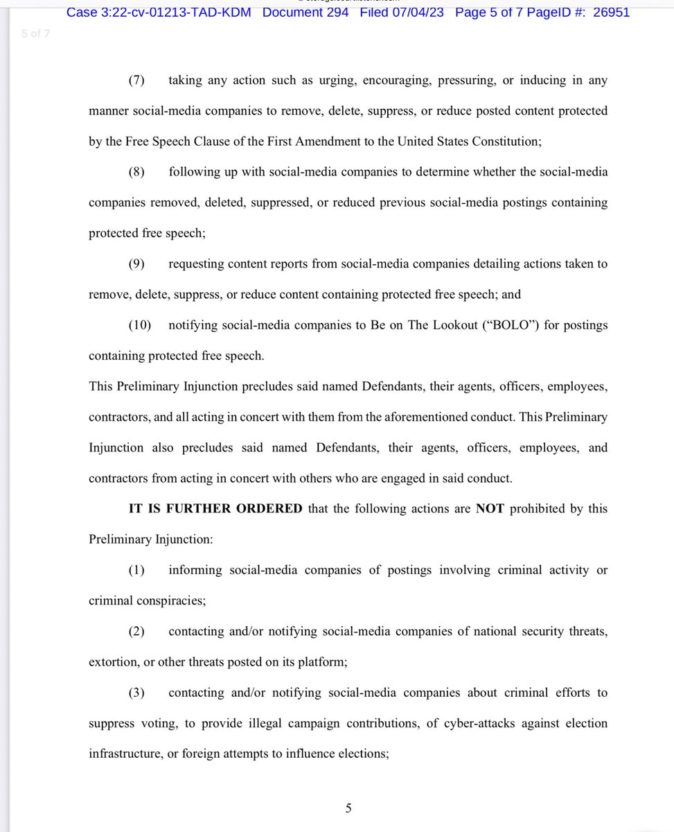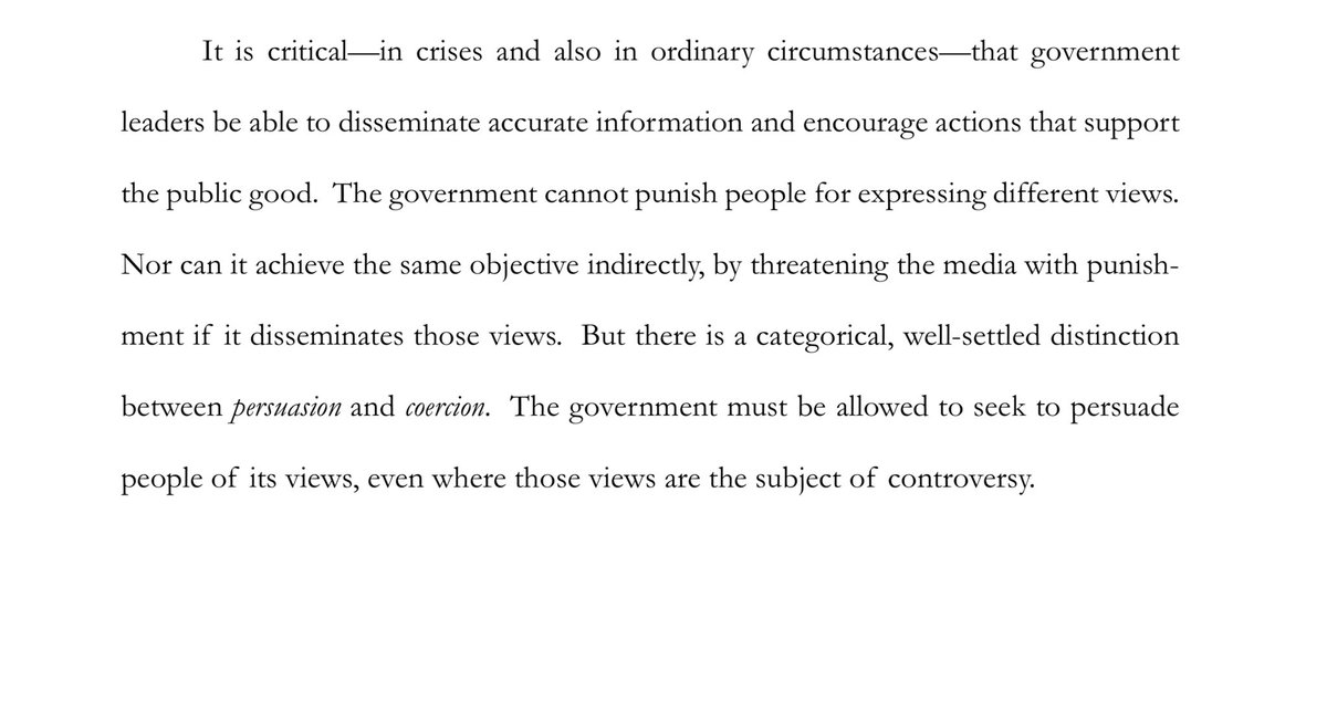 Again, nothing about the injunction would stop them from “persuading” you. All the injunction does is stop them from saying “hey social media company, take this post we don’t… https://t.co/bamwsmebzbtwitter.com/i/web/status/1…
