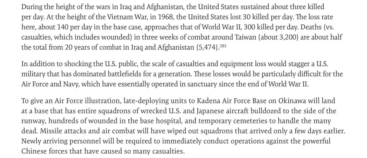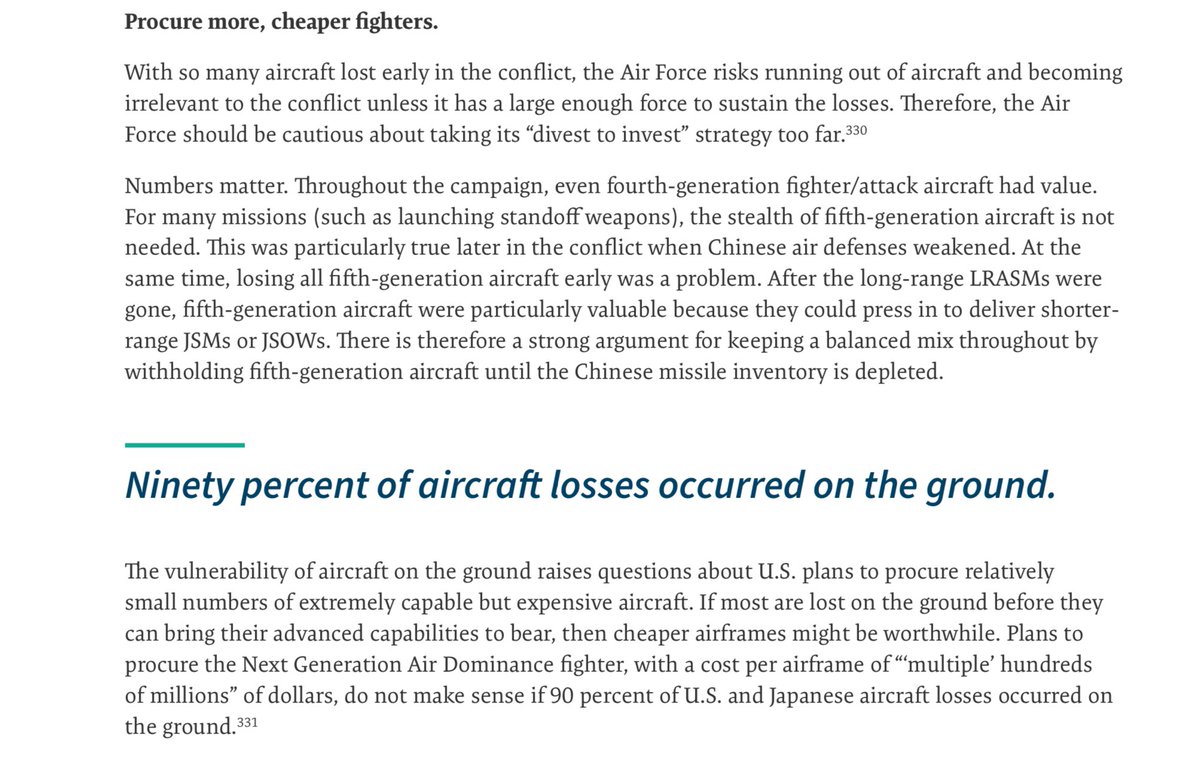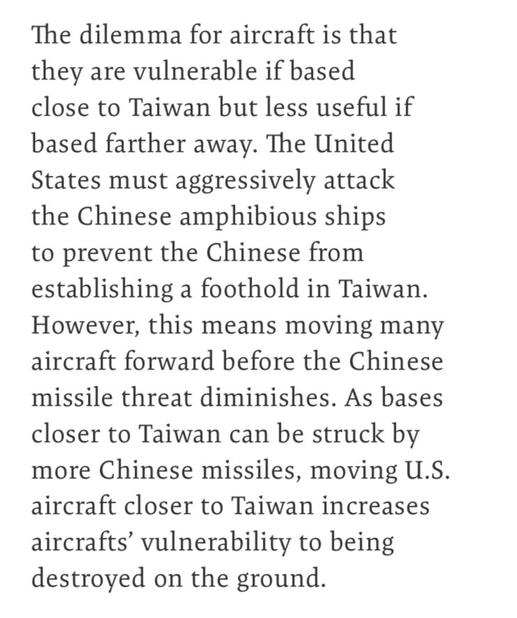 The problem basically is that even with really effective air defense, China has so many missiles stockpiled that US bases in Japan and the planes at them are repeatedly leveled in the beginning of a conflict.