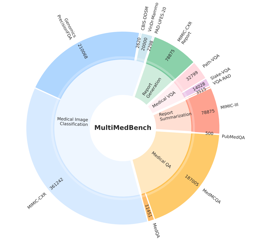 @taotu831 @AziziShekoofeh @HardyShakerman @peteflorence @DannyDriess @thekaransinghal @alan_karthi @GoogleAI MutliMedBench spans 7 biomedical modalities and 14 diverse tasks such as medical QA, radiology report generation, genomic variant calling and more with over 1 milliion samples.