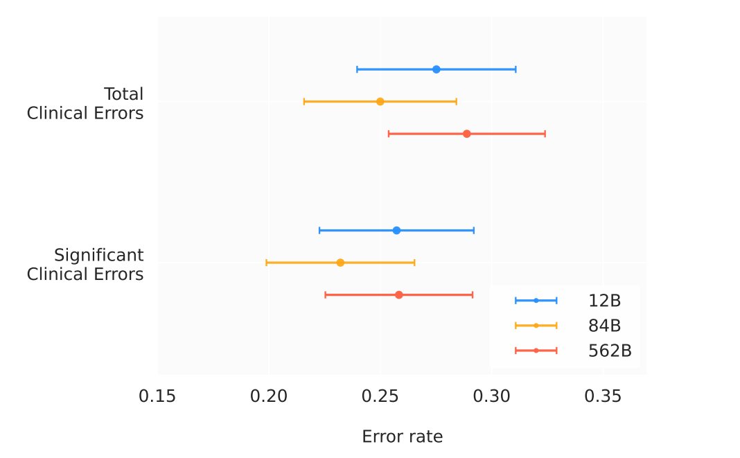 @taotu831 @AziziShekoofeh @HardyShakerman @peteflorence @DannyDriess @thekaransinghal @alan_karthi @GoogleAI Finally, to understand the clinical applicability of Med-PaLM M, we conducted a radiologist evaluation of AI generated reports across model scales.