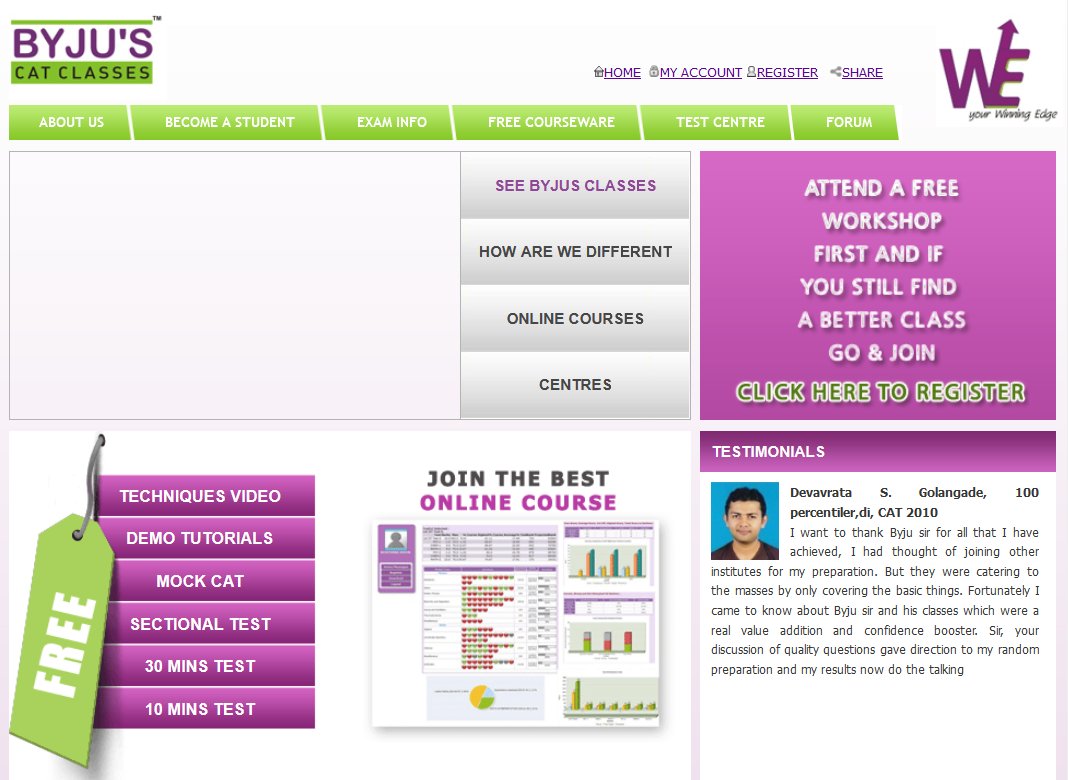 5/10 Realising that Noesis didn't roll off the tongue, in 2011 Byju rebranded the company to WE Global, WE standing for Winning Edge. By this point he had adopted a freemium model - students could take mock tests for free and if they were impressed, they could pay for classes.