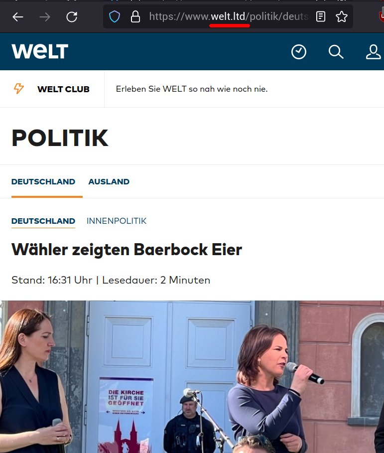 Tatsächlich ist die Seite aber auf der Domain 𝐰𝐞𝐥𝐭.𝐥𝐭𝐝 gehostet.