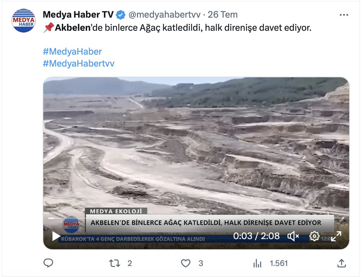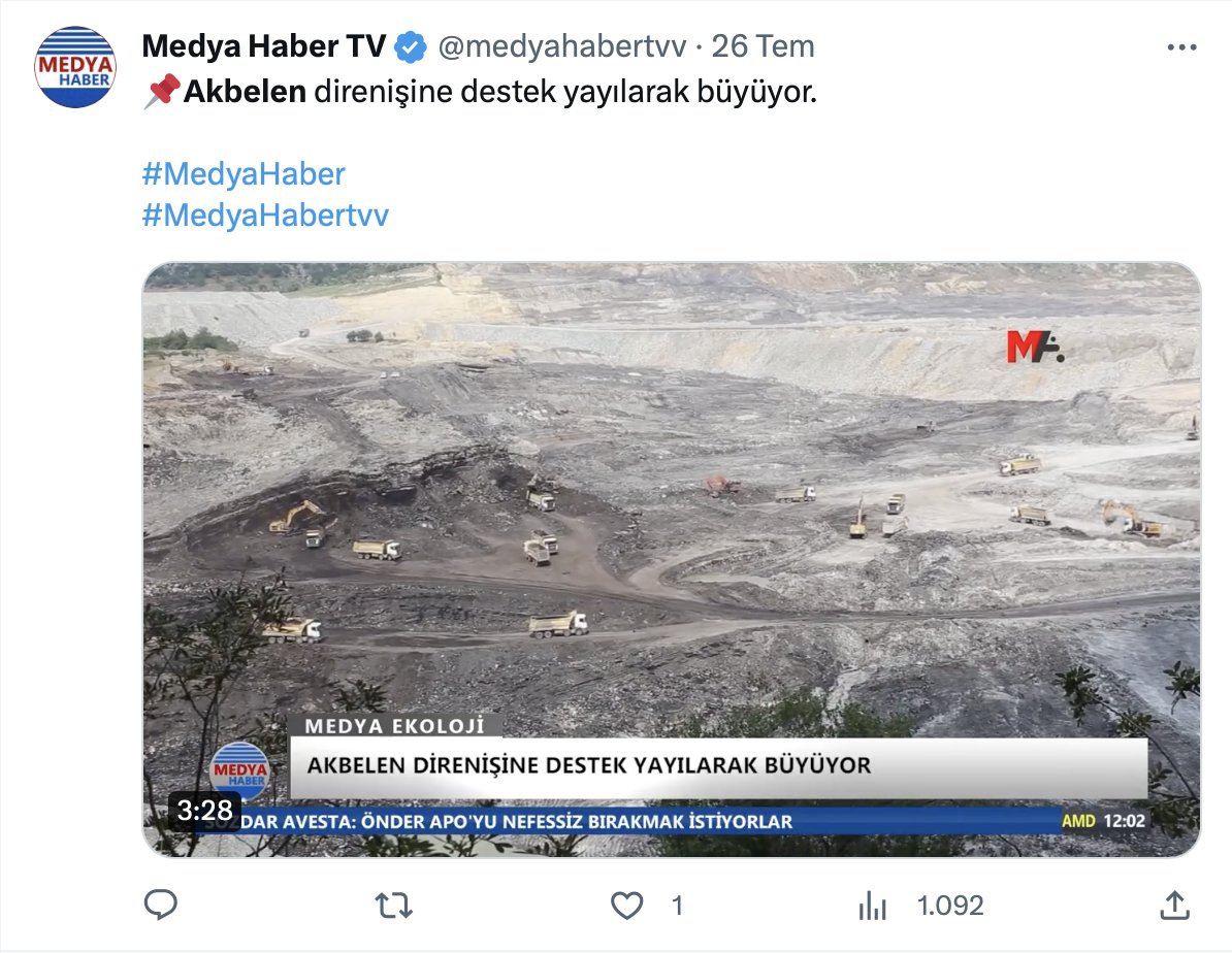 Akbelen organizasyonunu Pkk'nın Medyahaber isimli Tv kanalından yapıyorlar. Yani Pkk ülkemizin ormanlarını düşündüğü için bunlarla birlikte program yapıyor ve halkı direnişe çağırıyormuş. Size önce çok kısa şekilde Medyahaber Tv'yi anlatayım.