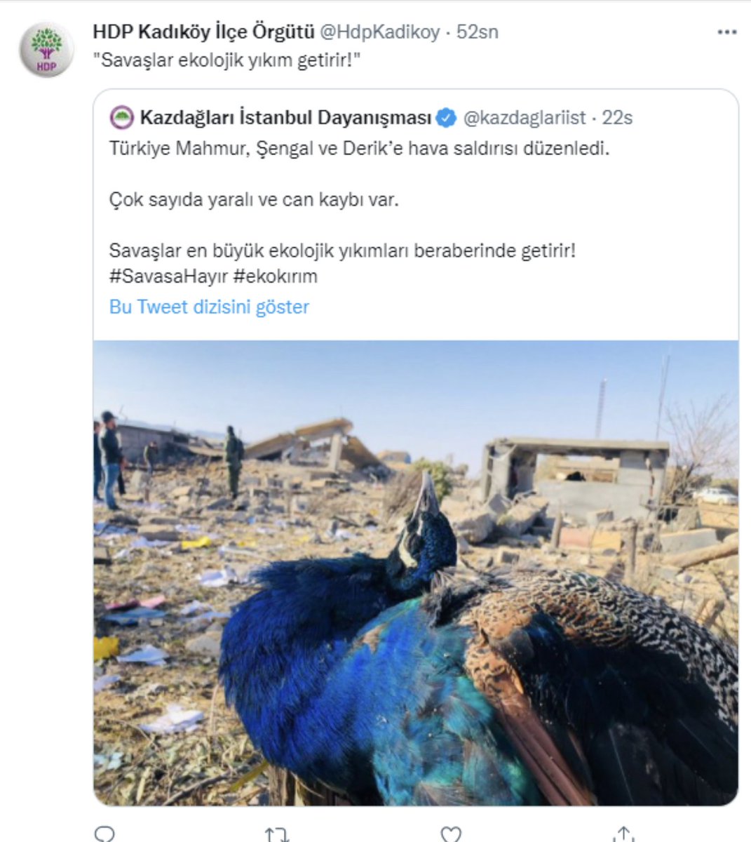 Bu sözde çevreci örgütleri bir iki örnekle biraz daha detaylı şekilde göstereyim. Çevrecilik iddiasındaki bu örgütler Pkk kamplarının vurulmasına da karşı çıkıyorlar. Akbelen ile Pkk kamplarının ne alakası olabilir ki? Asıl amaç tabiiki Pkk propagandası yapmak.