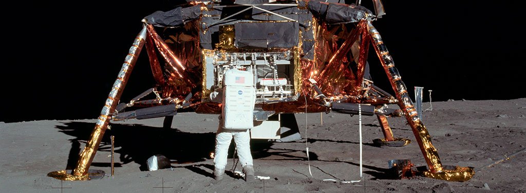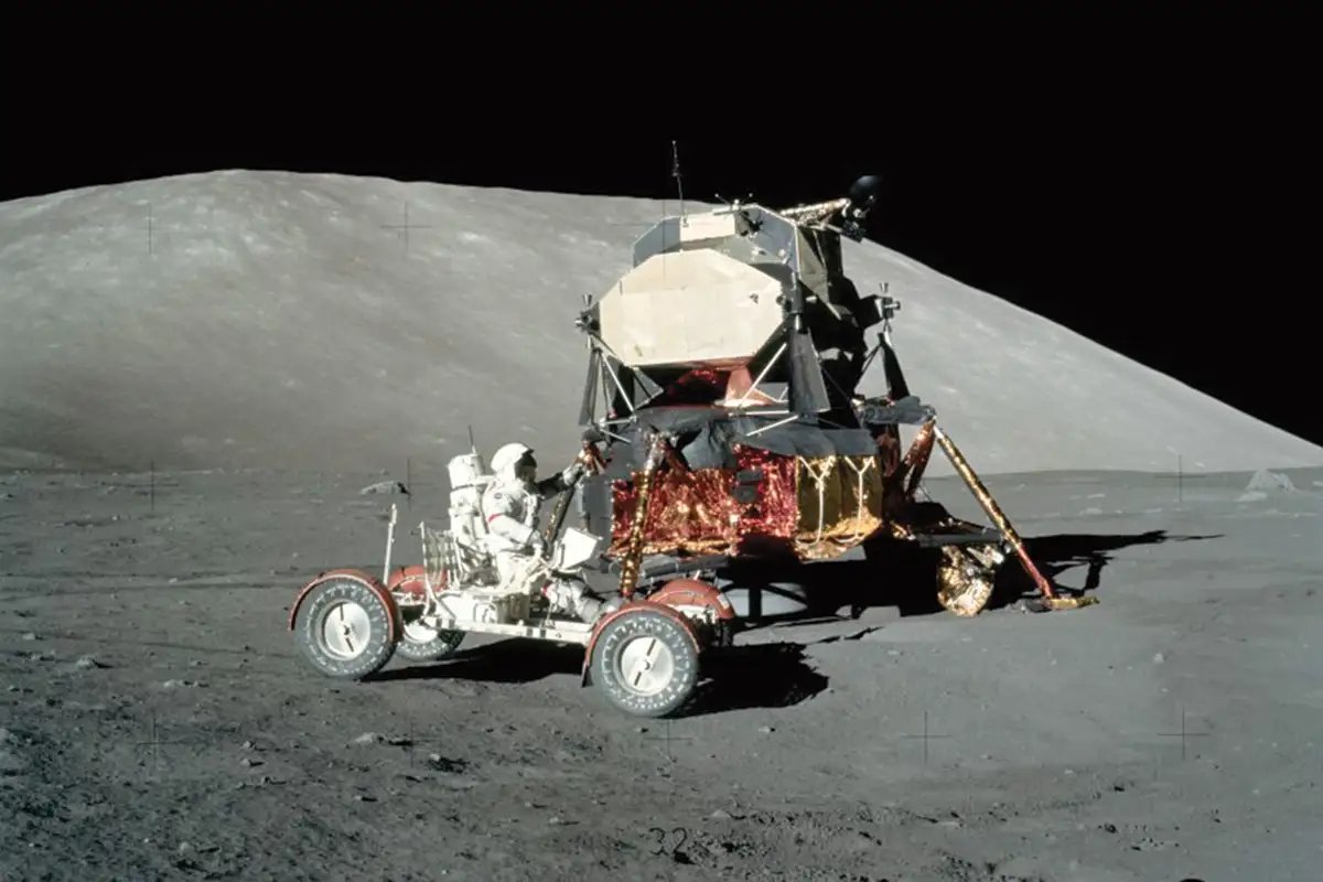 Además de muchos experimentos, que aún hoy siguen funcionando, y bolsas con los cubrebotas, desechos biológicos (💩) y demás basura, todas las misiones dejaron un enorme objeto en la Luna: el módulo de descenso.