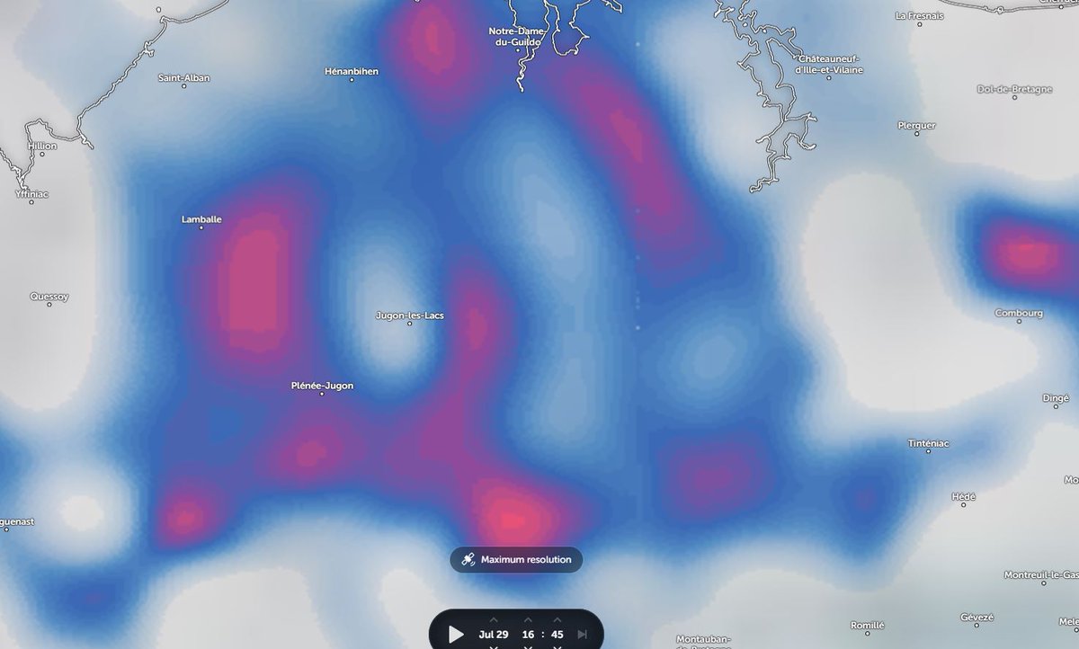 Judging by the observed strength of the rain that passed over Brittany a few hours ago (tropical warm rain fairly persistent) the modelling of this weather event could be estimating its impact on the low side.