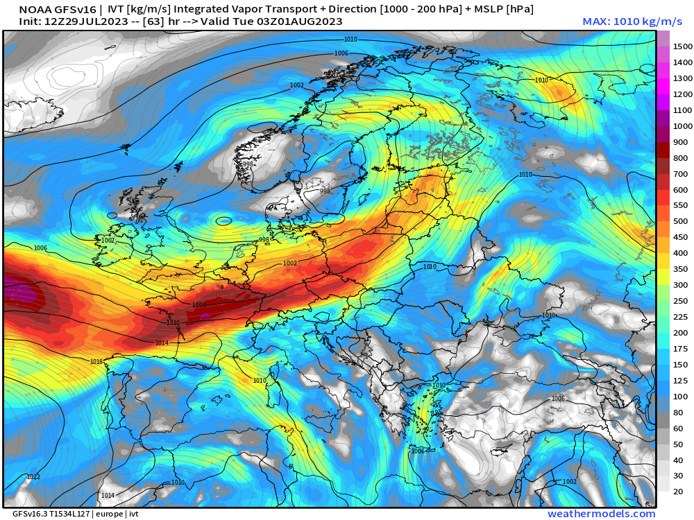 While its an arctic storm in origin. It is also being powered by an atmospheric river bringing it moisture and energy as the water vapour coming north is warm - and interestingly as you can see here it is actually coming from the North Atlantic too.... its all part of the same… https://t.co/CpDFVcVqQjtwitter.com/i/web/status/1…