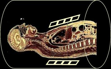 An MRI produces a 3D image of a persons body by applying an extremely strong magnetic field that varies in strength over the persons body.