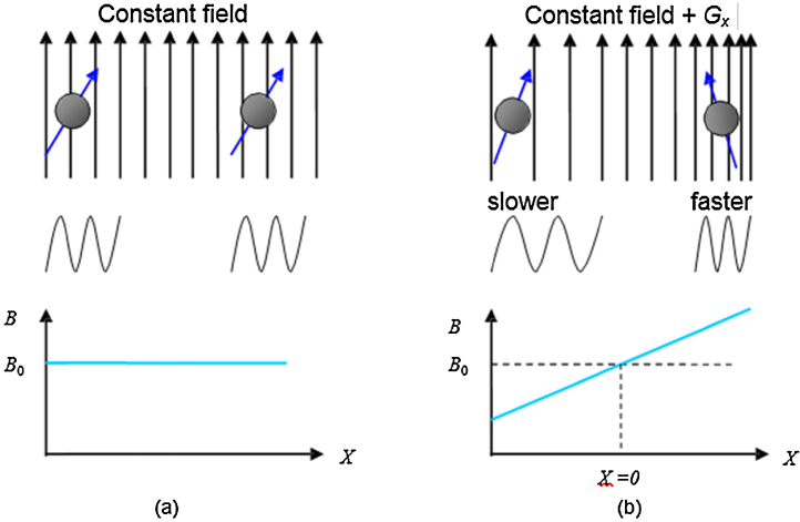 The frequency of spinning is proportional to the magnetic field, and as they spin, the protons emit RF waves.
