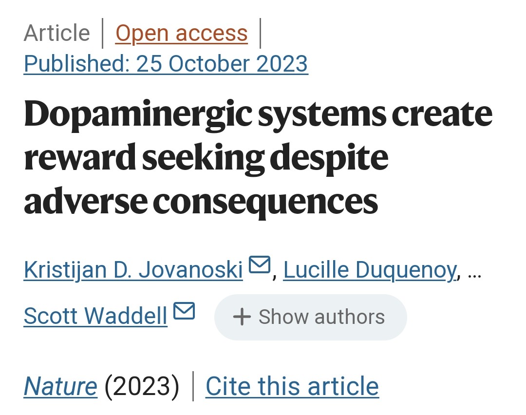 @MeetJess @LauraMiers @elisaperego78 @DavidJoffe64 @xabitron1 @HarrySpoelstra @1goodtern @0bj3ctivity @_ppmv @Alitis__ @FLAHAULT @Antonio_Caramia @mrmickme @C_A_Gustave @arijitchakrav DYSFUNCTION of DOPAMINERGIC system = RISK TAKING while SEEKING REWARD