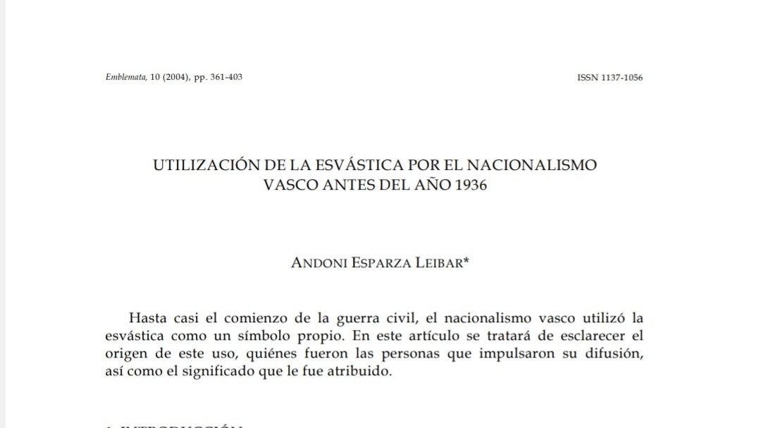 De hecho, es recomendable la lectura de trabajo de Andoni Esparza sobre el uso de la esvástica por parte del nacionalismo vasco antes de 1936, que obviamente no tiene nada que ver con el uso de la NSDAP.