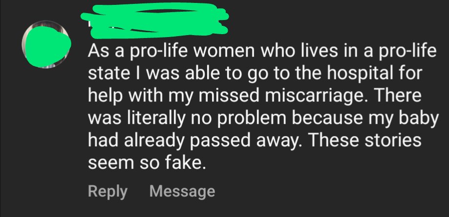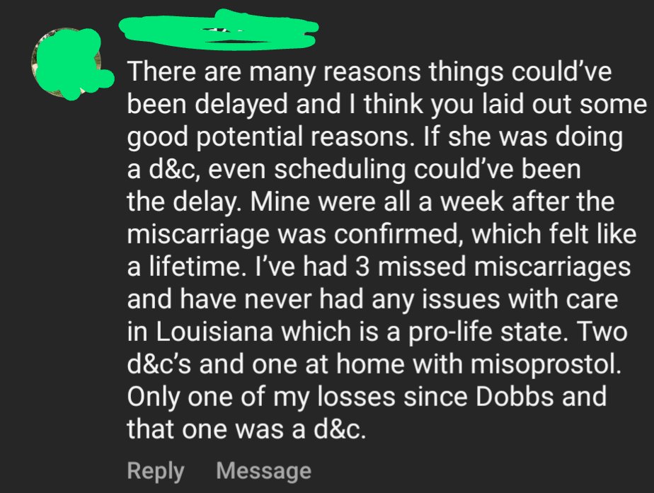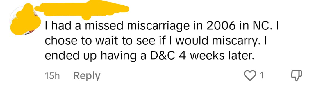 Sometimes a woman has likely had a missed miscarriage but the doctor will delay offering D&C or mife/miso. People sometimes assume this delay is because of anti-abortion laws, but waiting is not uncommon even in states without restrictions. 2/