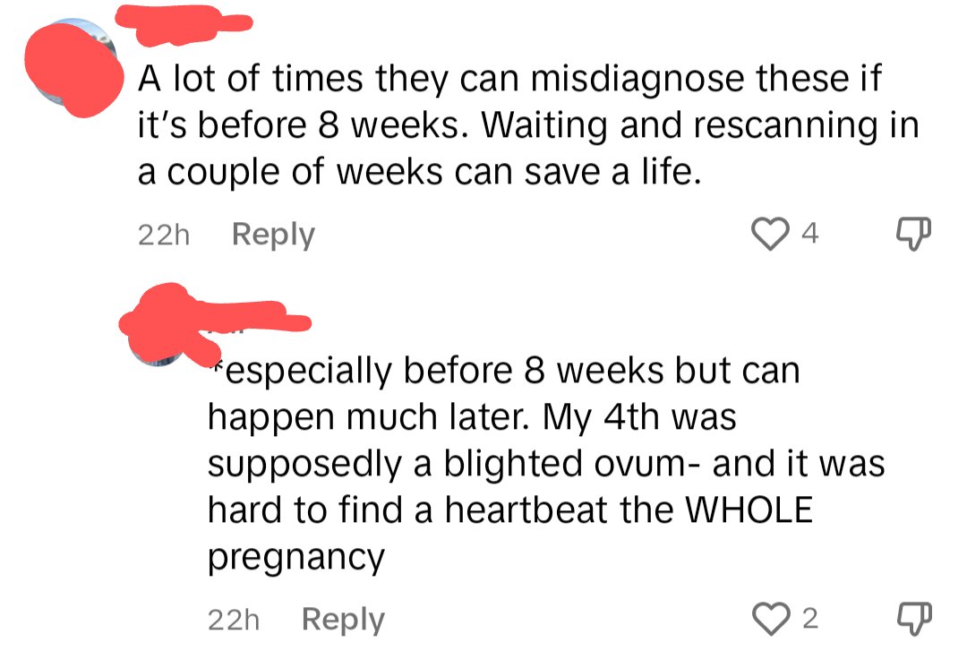 There are cases where doctors think a woman has miscarried but wait to be sure, and it turns out she hasn't. 4/